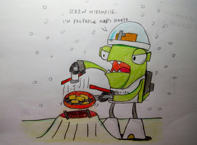 "Well, it's the ONLY restaurant in Snowdin so, we don't have any choice but Mr. Brown's. Besides, the cheese fries are one of the few things that're good in that restaurant."