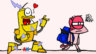 Gumball and Nicole concerning Mr. Brown's (Grillby's)
