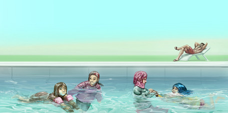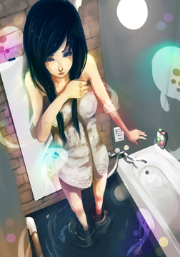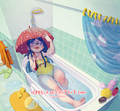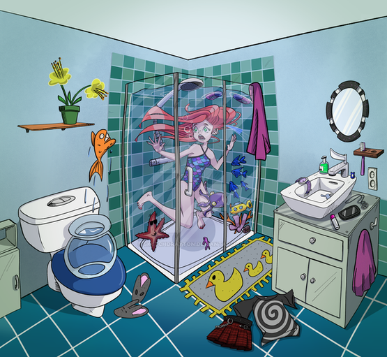 During the weekend after going out on an outing with friends, Ruby returned home and decided to relax her body and rest her mind with a shower. With the clothes she wore during the outing of course. Nothing added and nothing removed. All-in-all, she enjoyed the time she spent in the bath and returned to her day to day life; too lazy to change and proceeded to make a mess of her room. Don't worry, her parents thought ahead knowing her... "interests" and no real damage was done.Ah, sorry for the sudden reappearance. Been gone for too long and my most recent posts have others' artworks of my characters, such as this one. I know, I know, I'll need to get back to posting MMD deviations and I will. I just need to remember what I was supposed to be doing with them in the first place. Since I have so much time on my hands now, I've got no real excuse, huh? Oh, well. Cheers!