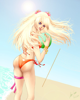 [EDIT] 8/13/2008: Made some drastic changes to it cuz I couldn't stand seeing this bubbly garbage anymore. Sorry the whole bubblegum art has worn out.Hitomi from Dead or Alive Extreme Volleyball.