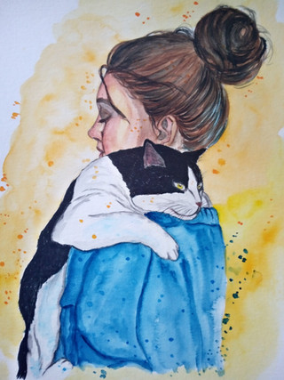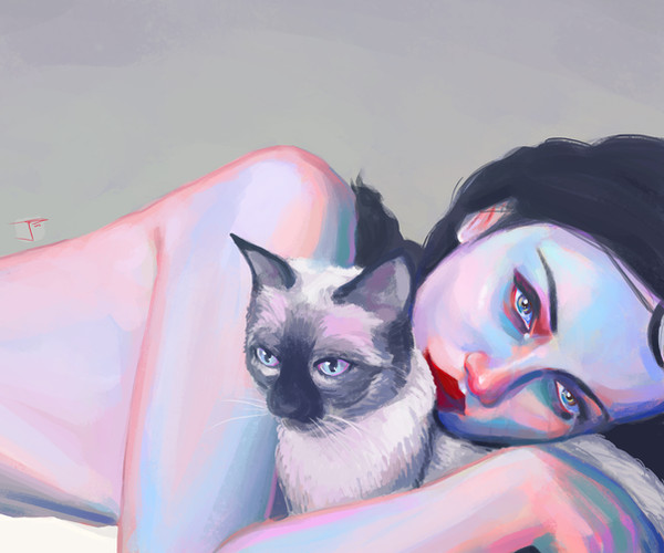 #cat #girl #portrait #traditional #art #drawing #mixedmediatraditional