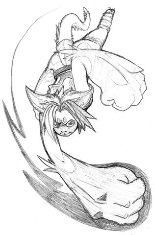 What I had actually being going for was post-swing of the sword. but I couldn't logic. Would raising the arm so it's pretty much parallel with the ground make it look better? Or should it still be angled a bit? XD I'll try it mostly straight, I guess. I dunno. I'll fiddle.