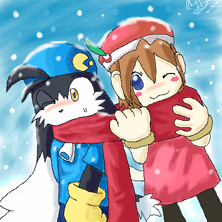 Still looks hot, though. 8I Klonoa's expression is kinda funky lookin'. Like he's about to fall asleep. XD Great pic, though!