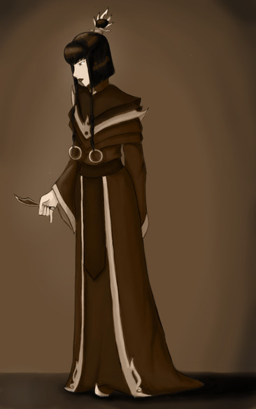 I've seen the sketches of her, but it's really cool to see Ran in color. Her hair style is really cool and it's also nice that you kept the pointy toed shoe style from the Fire Nation. I'd like to think that no matter what era the Avatar world is in, pointy toed shoes are always in style in the Fire Nation. Haha.