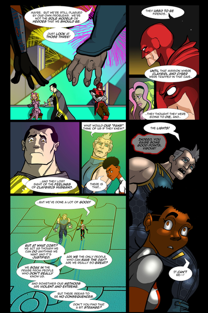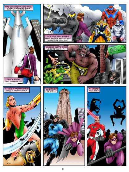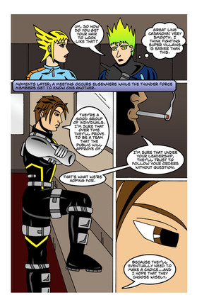 Omega Rising: "The Guardians" - Page 1 of 6Our third annual summer crossover event begins at Thunder Force headquarters (days after Animal Boy's birthday party), where Mighty American receives word from Director Rogers (of R.A.P.T.O.R.) about a suspicious gathering of meta-villains.