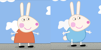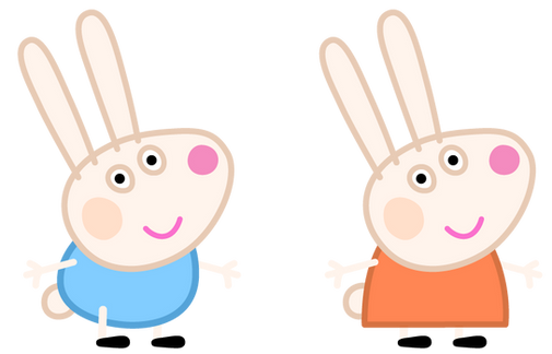 These are Robbie Rabbit and Rosie Rabbit. They are Mummy Rabbit and Daddy Rabbit's baby fraternal twins. They are also Rebecca and Richard Rabbit's siblings. Robbie wears a light blue shirt, and Rosie wears a reddish-orange shirt.Related content