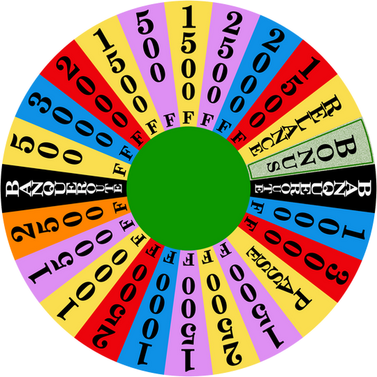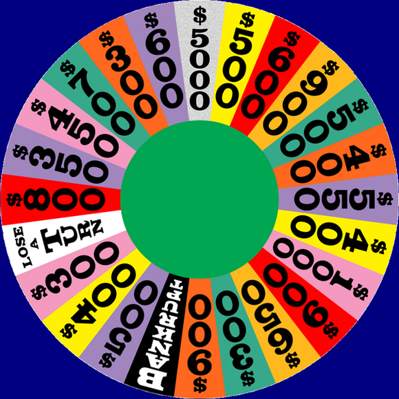 I have the honor of hosting a Wheel game with my friends. When I got that news, I got to making four sets of wheels for 6 rounds of play: 4 regular rounds, the Speed-Up Round and the Bonus Round.This wheel is used in Round 1. The top dollar value is $1,000.