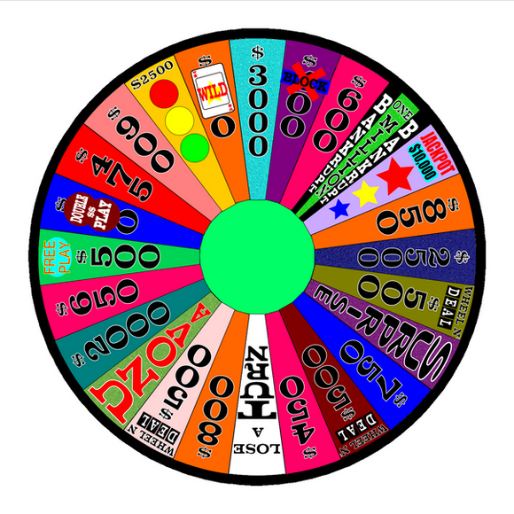 I have the honor of hosting a Wheel game with my friends. When I got that news, I got to making four sets of wheels for 6 rounds of play: 4 regular rounds, the Speed-Up Round and the Bonus Round.This wheel is used in Round 3, the Mystery Round. The top dollar value is $3,500. One Mystery wedge covers the red $900, and the other one covers the teal $700. Both award $1,000 per instance of the consonant called. Take that money, or reveal the mystery? One hides a $10,000 prize. The other one hides a Bankrupt!