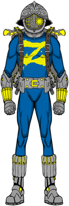 Ace wears a heavily padded fire proof experimental pressure suit designed to resist the effects of G-Forces upon his body in flight and especially during super sonic speed. The suit helps maintain a normal body temperature