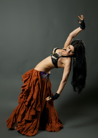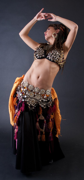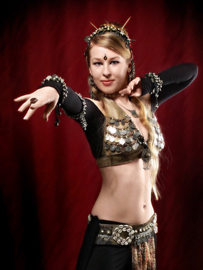 The fantasy dancer is a theme that I keep coming back to. In fact, I was talking to my first girlfriend - who reminded me that back in 1979 I learned to sew and made her a fantasy dancer outfit. I guess I like the concept. This is the "khadjia" outfit from Moresca ( [link] ) - makers of truly awesome garb for ren faires and just dressing up funny. They also made my "death robe" that I wore in "the grim weedwhacker"The model, of course, is the magificent Zinn.