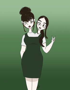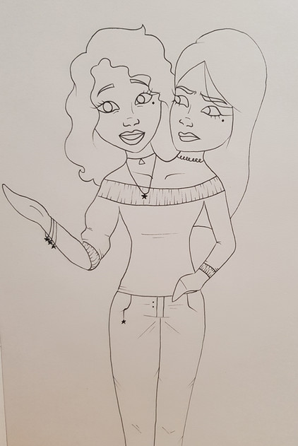 Yes, I edited it, but only so you could see the lines better.The only reason why I didn't outline their actual body parts was so that the faces didn't get lost in the hair and other details around it.