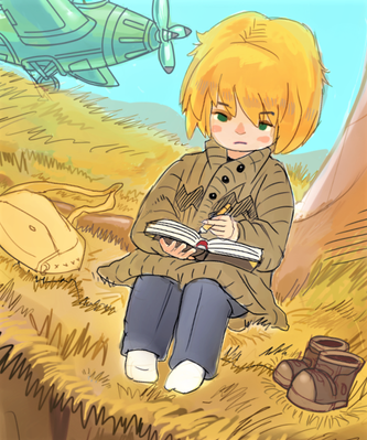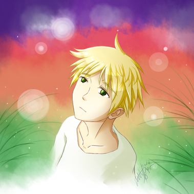 i really like how he looks so distant!! And the grass or whatever, is super awesome!!!!!! I frikin love this >v<
