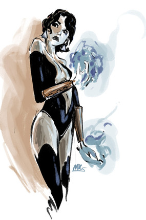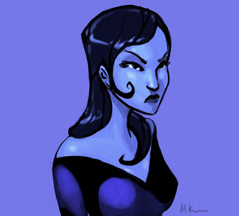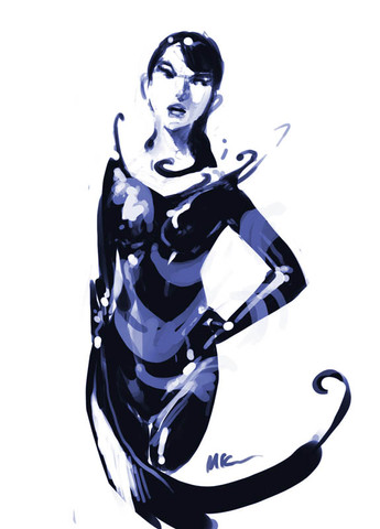 Wow. This is a scrap? Wonderfully evocative expression and colors, and the glisten on her hair and costume adds great snap. The background contrasts to bring Inque to the fore without overwhelming her. Overall, there's a sense of erotic doom here that really resonates. I wish you'd been able to complete it.