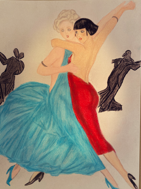 Soft pastels, sticks and pencilsArt Deco coloring book purchased on Etsy