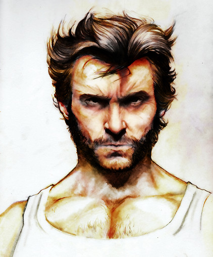 Traditional painting of Hugh Jackman as Wolverine. I didn't actually see the last 20 mins of the movie.[edit 01.09.2010] Gouache on watercolor paper