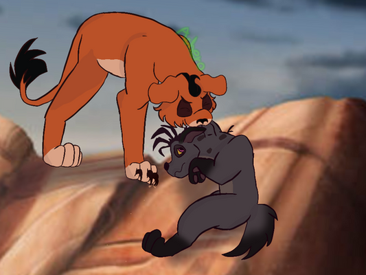 Haki didn't listen and instead ran towards the tree as fast as he could knowing the limb was going to break any second. As he got closer he noticed the distance to the other side somewhat looked jumpable. It was a risk he was willing to take. He got to the edge and didn't hesitate leaping when the branch finally broke and the cub began to fall. The timing was perfect because Haki managed to catch the cub in midair and now the only thing he could do was hope, they made the jump. He made it by only a hair, hanging on the other side by his paws but he couldn't pull himself up. His paws began to slip when suddenly he was pulled up by his mane. It was Hodari, his strongest member. The lions managed to jump across a ledge that was much closer to the other ledge just in time. The strong lion pulled the two all the way up and Haki smiled at his team before sitting the startled cub down. The cub had pure fear in his eyes and was in shock.