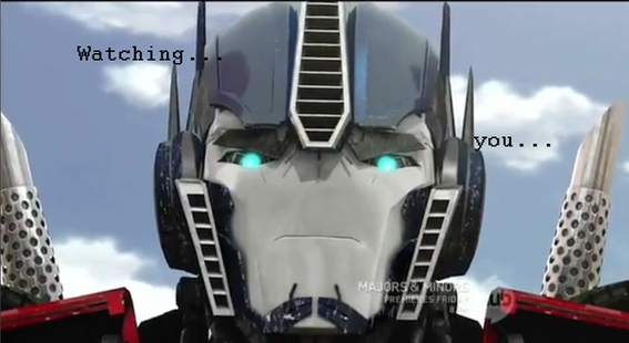 You know, Optimus is lucky that he's not in his Season 3 form. Now that would be cramped!