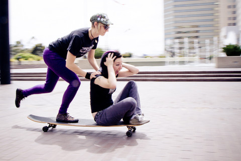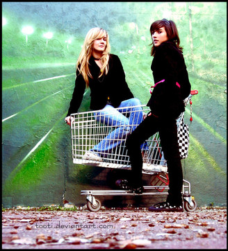 haha this picture is great. i love the motion and facial expressions and randomness of the entire scene (girls in a shopping cart in front of a lake??), very nicely done.