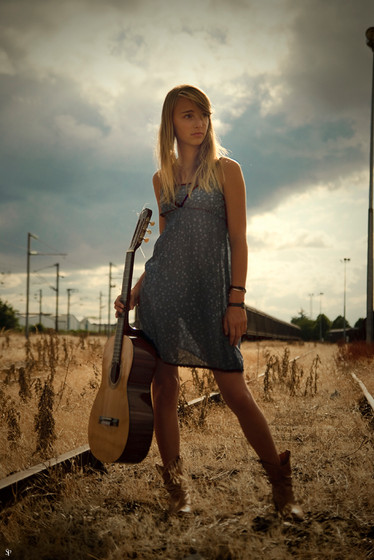 It's actually my fault; the only photo where her head, the guitar, or the car wasn't cut off was this one, and her face was less expressive in this one than the three or so others. But thank you anyhow!