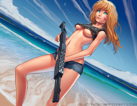 Also, you gotta give her some sort of enormous gun like a Barrett 50. cal or something! Just something totally unwieldable by someone of her size.