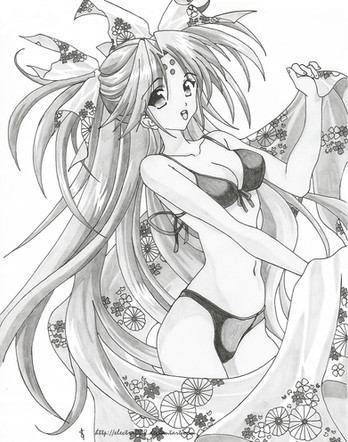 First time I've tried something like this. The pose is a classic Love Hina pose though. But that's the only reference I had on this piece :3