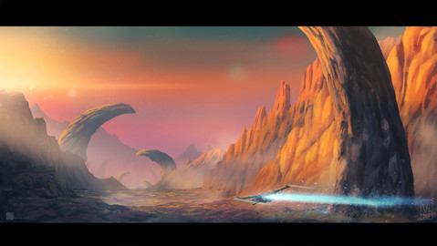 #approach #cool #epic #hostile #landscape #late #lightning #planets #spaceship #valley #mleth #sciencefiction