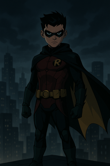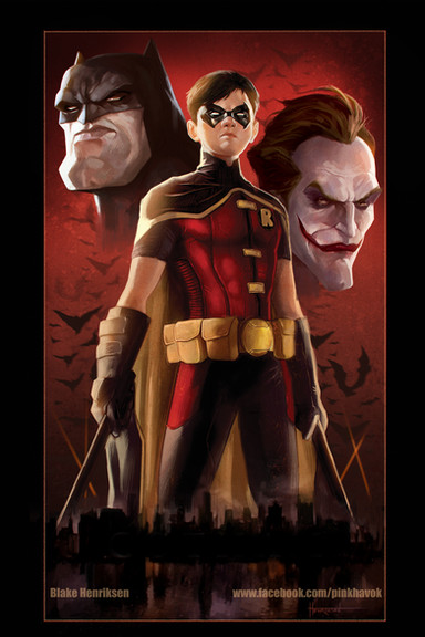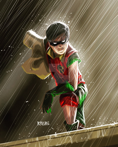 really dig the perspective here, I've always loved downward shots like this. The fact that the boy wonder is in it makes my day! Really like the expressiveness of his eyes and the movement of his cape. Super work!