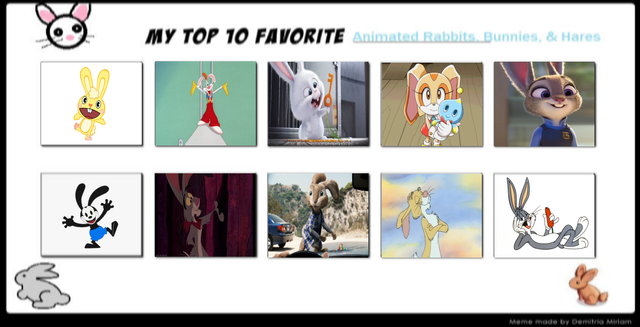 #clayfighter #cream #hoppy #list #meme #rabbits #topten #lopunny #richardwatterson #bugsbunny #buttercream #fostershomeforimaginaryfriends #littlestpetshop #looneytunes #mrherriman #peppyhare #pokemon #rogerrabbit #sonicthehedgehog #starfox #amazingworldofgumball #bunnymund #riseoftheguardians