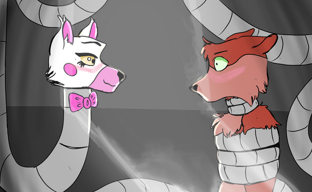 Mangle loves to cuddle, however her cuddles feel more like strangling sessions. Therefor the original Fazbear Crew tends to run from her, including foxy.Unfortunately even with his speed he never gets away...