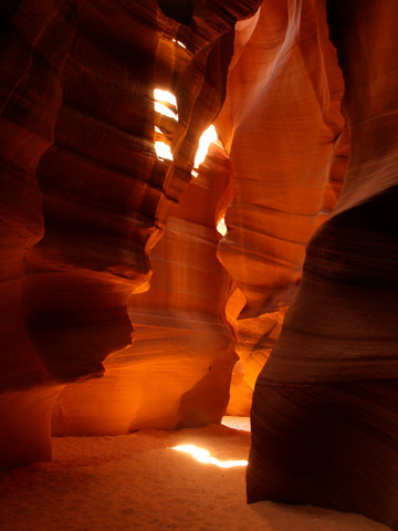 Quite possibly one of my favorite photos taken at Antelope Canyon. I captured this with a fair helping of sand being tossed into a light shaft and an even bigger helping of luck. I hope you all enjoy as much as I do!Β