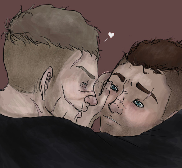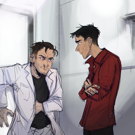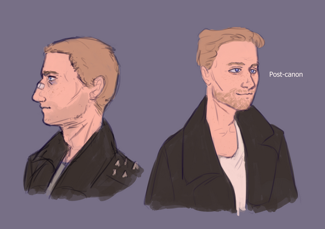 The song is great but the drawing is lazy. XD anyway. Sullivan and Hayes from my scifi story about dimensions and time and stuff! Hayes is young here. Unlike Sully who doesn't feel nor show emotions, Hayes has strong feelings - but he's forced to ignore them. He's going to make a lot of compromises and morally questionable choices because he is told to and he has to, and over time he will become the one to give such orders to other people.