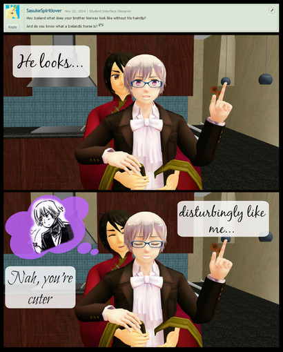 China:...I think you broke him. But yes, children that are half or full nation do age faster. We call them 'Age Spurts'.(I fear for my sanity..)