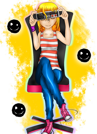 This is for my portfolio that i'm making in order to get into the graphic design course i want next year. The instructions were "Produce a Visual Statement".Subtle, aint it? 8D This is who i am, completley obbsessed with video games. For I am ze Gamer Chick.