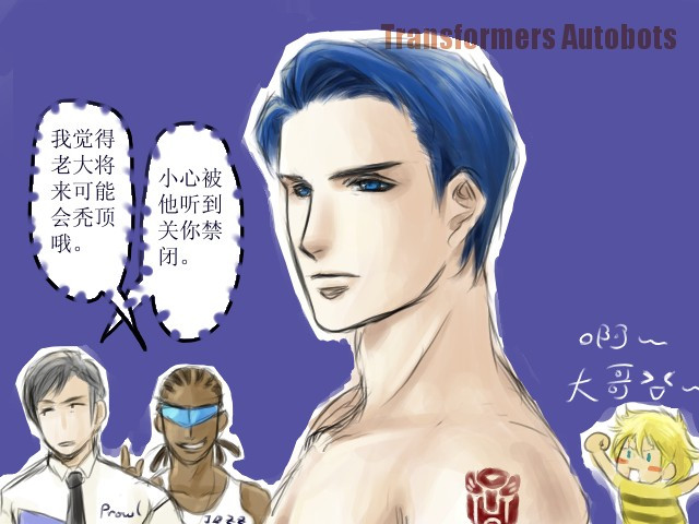Optimus was helping Megatron do some cleanness.The characters on Megatron's chest read:"work safety"