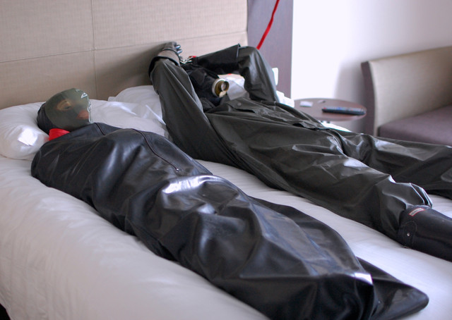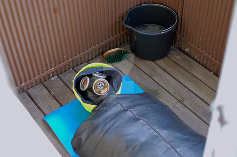 Love to be your model fully covered and put in a tight sleepsack as she is with gasmask etc.