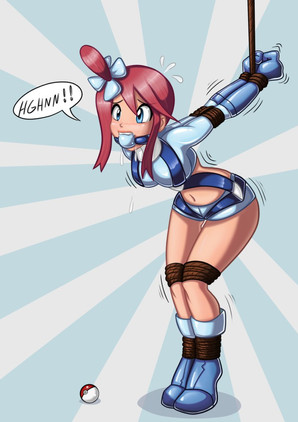 Fuuro, a new Gym Leader form Pokemon Black nad White is suspended, tied up and gagged.Related content