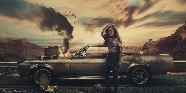 #car #dark #digitalart #girl #model #photomanipulation #photoshop #sexy #vintage #weapon