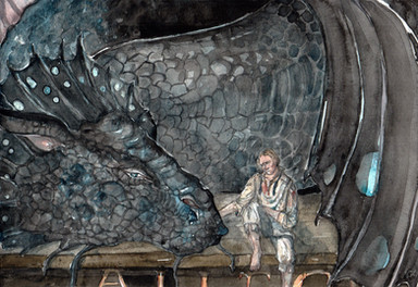 Aw, the dragon looks like he (she? it?) is enjoying the book. Man, you have such control over your watercolours. I am mad impressed. look at the edges of the bookcovers and pages and the wood grain.