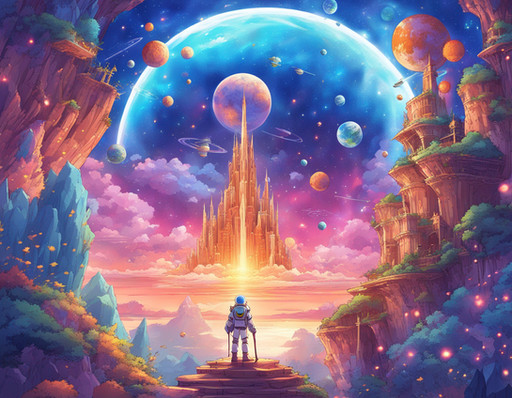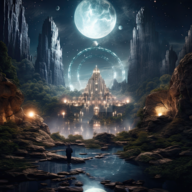 #floating #castle #clouds #fantasyart #fantasylandscape #moon #spacescape #trees #waterscape #aigeneratedart
