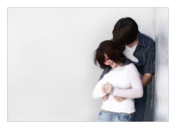 It almost looks like we caught them in the middle of something . . . they're so casual looking. I'm not that crazy about the purple background because it seems not right for the couple. But, I love how they are clinging to each other.