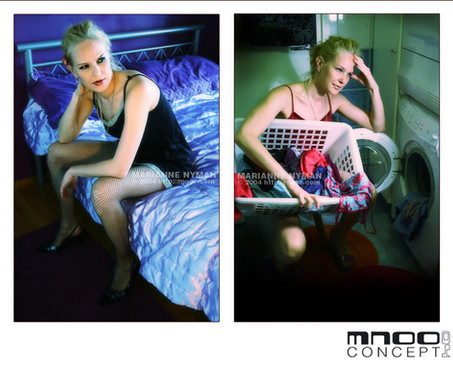 Hmm.. this photo sets a very nice mood and there seems to be an actual connection between them.. Just the way they stand so close, their skin tones matching and the style of clothes... very nice job clashing them -kia