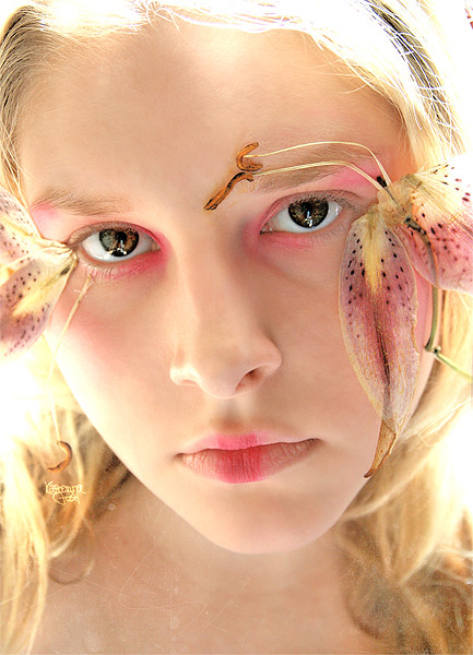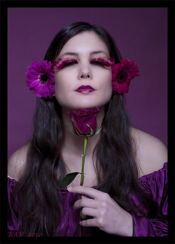 I really like the colours... the different lashes and the flower... lovely! I like the colour of her hair as well.