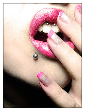 i love that the shadow on the back of the tongue is the same color as the tips of the nails. so cool and soooooo glamorous ^_~