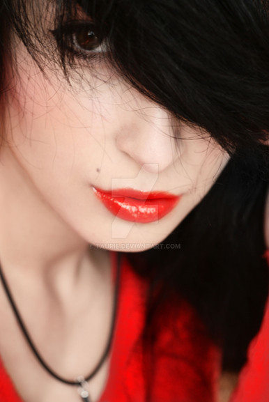 Beautiful, I love the smoothness of the skin, hair and lips. The red looks great against the black hair and the blur at the bottom of the picture draws a lot of attention to the lips. Great shot