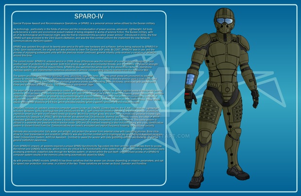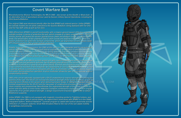 True militarised space suits are things like the Wolfhound armour and the CWS or SPARO.