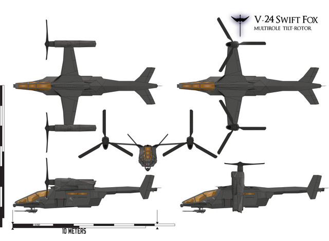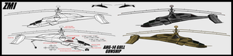 An element of Escea’s Airborne Renewal Program, the Hale Gunship - 64 /Zulu – also known as the ‘Hellfire’ – is the primary attack VTOL used by the Escean military. Commissioned in 2088 and introduced in 2094, the Hellfire replaced the HG-60/M ‘Firebird’ in Escea’s ‘Terrestrial Triangle’, the Army, Navy and Marine Corps branches operating on Earth. Smaller, lighter and faster than its predecessor, the Hellfire is also equipped with a larger array of weaponry and more advanced avionics.