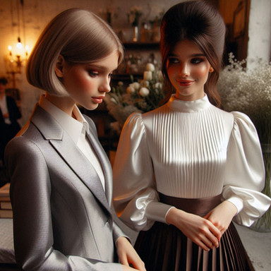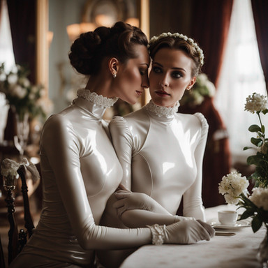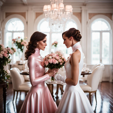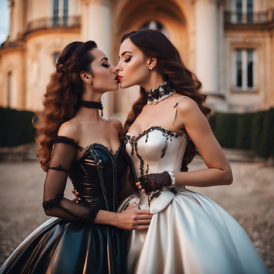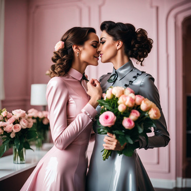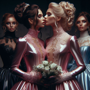 #dress #ai #dreamup #beauty #glamour #leather #makeup #hairstyle #latex #lesbian #lesbianromance #lesbiancouple #latexdress #ai_art