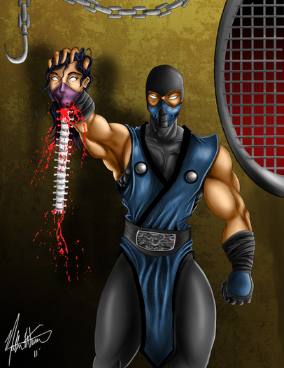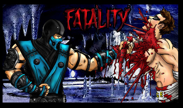 I knew he rips spines from the back but the front? Yes! Bonus points for Johnny Cage getting what's coming to him.