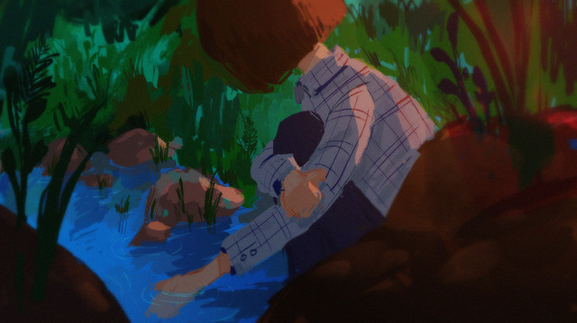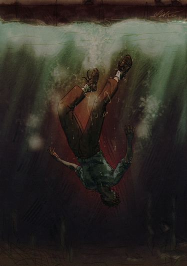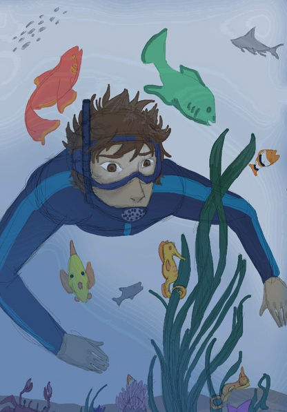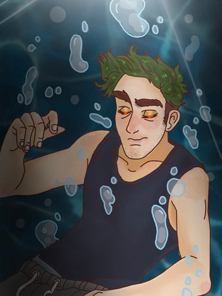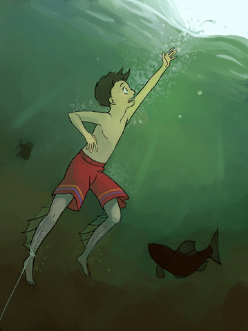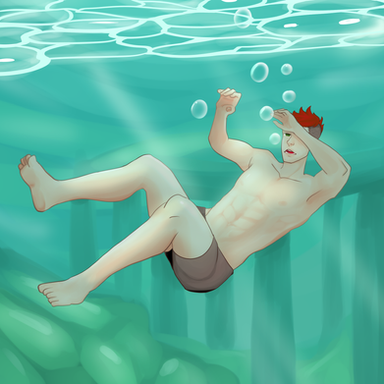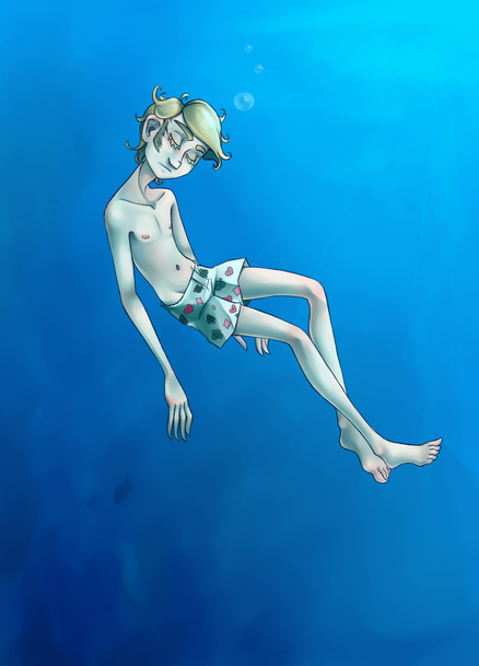 lol love it to me it almost seems like he has no idea how he got there, the bubbles are really cool and i love the dappled effect on the ground to show the light!