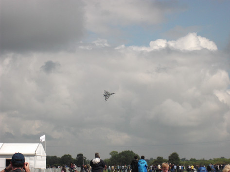 Nice fluffy clouds! Looks like a Panavia Tornado jet because of those swept looking wings, and you are in England after all... nice shot, a little grainy but thats ok!